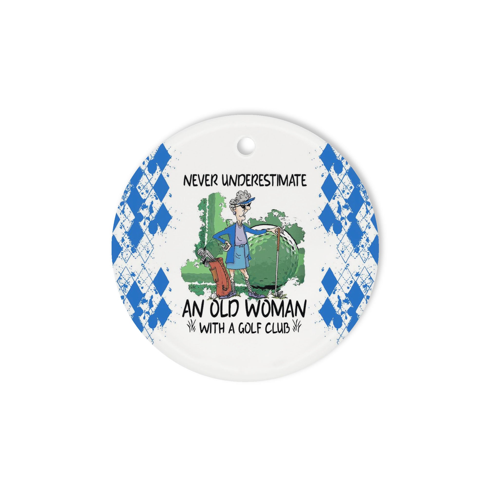 Funny golf Christmas ornament never underestimate an old woman with a golf club ceramic Ornament NQS4133