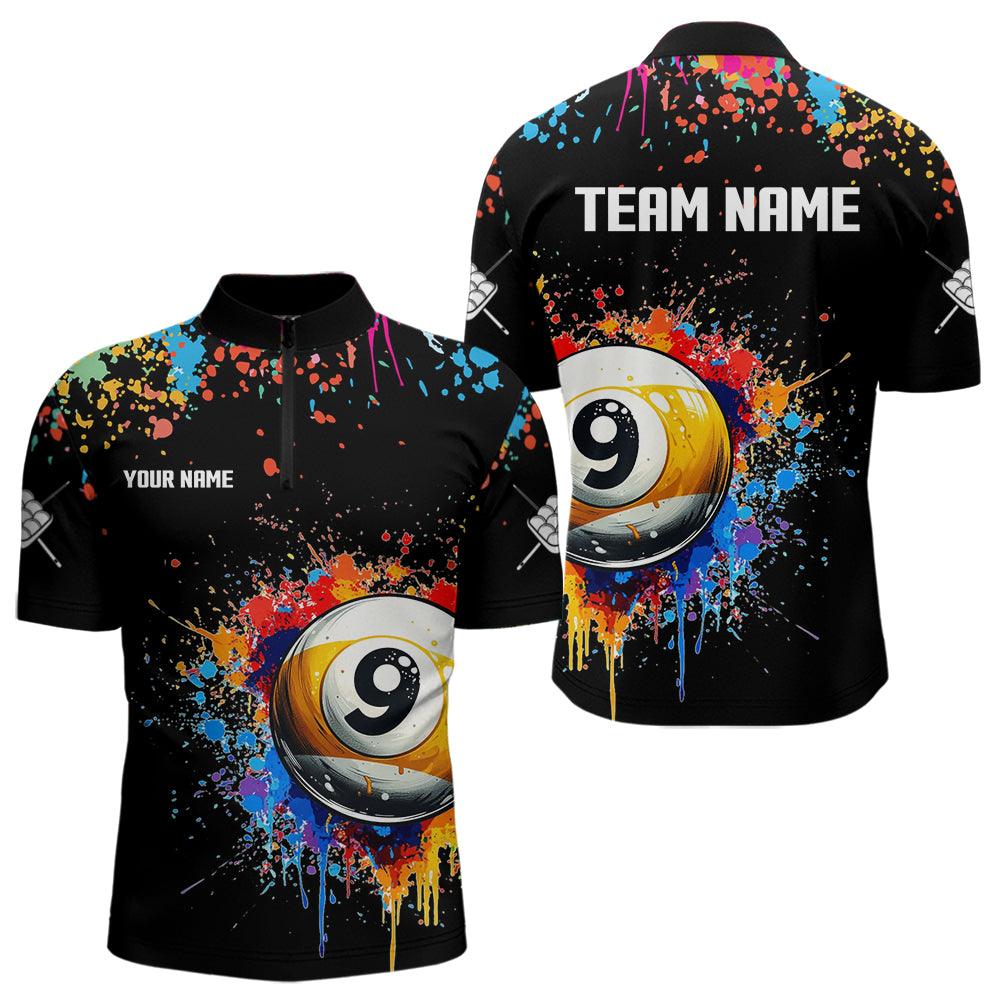 Funny 9 Ball Pool Colorful Paint Splash Custom Billiard Shirt For Men, Billiard Team Jersey | Black TDM3702