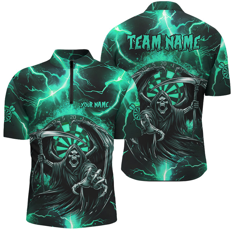Personalized Turquoise Grim Reaper Custom Thunder Lightning Men Dart Shirts, 3D Darts Team Jerseys TDM2800