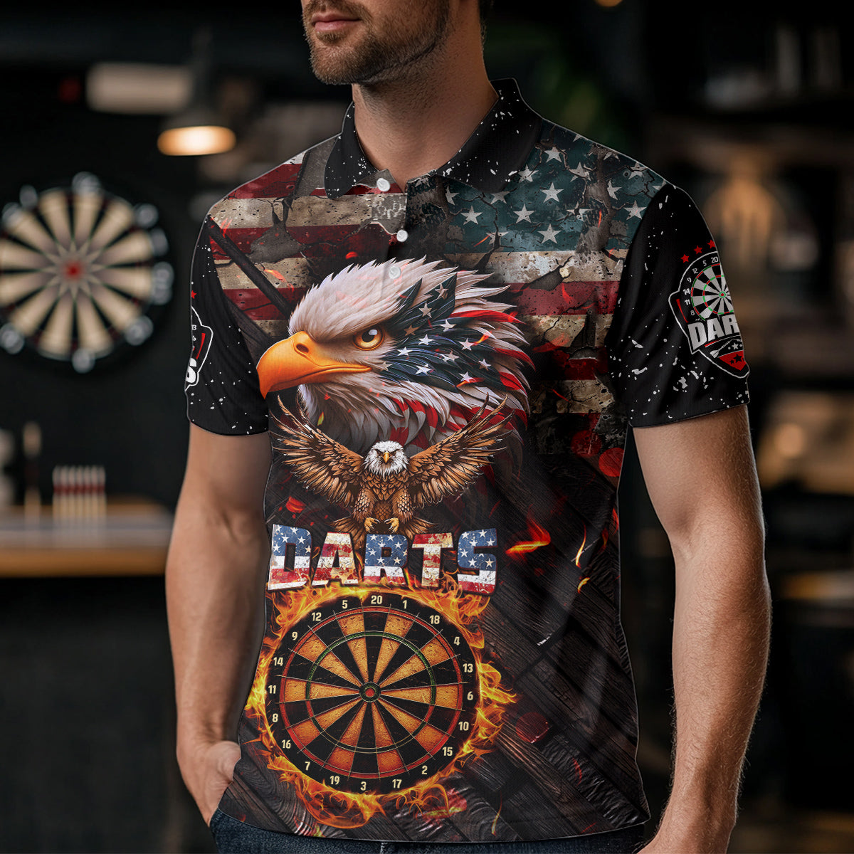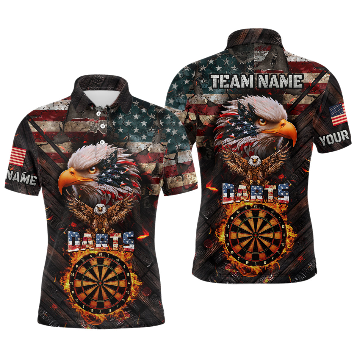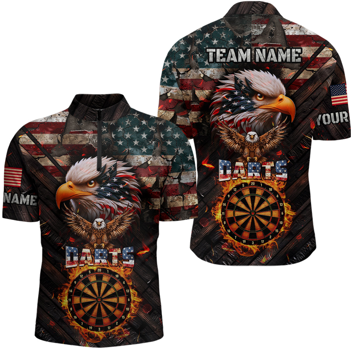 American Flag 3D Dartboard Fire Flame Custom Eagle Darts Shirt For Men, Patriotic Darts Team Jersey TDM1828