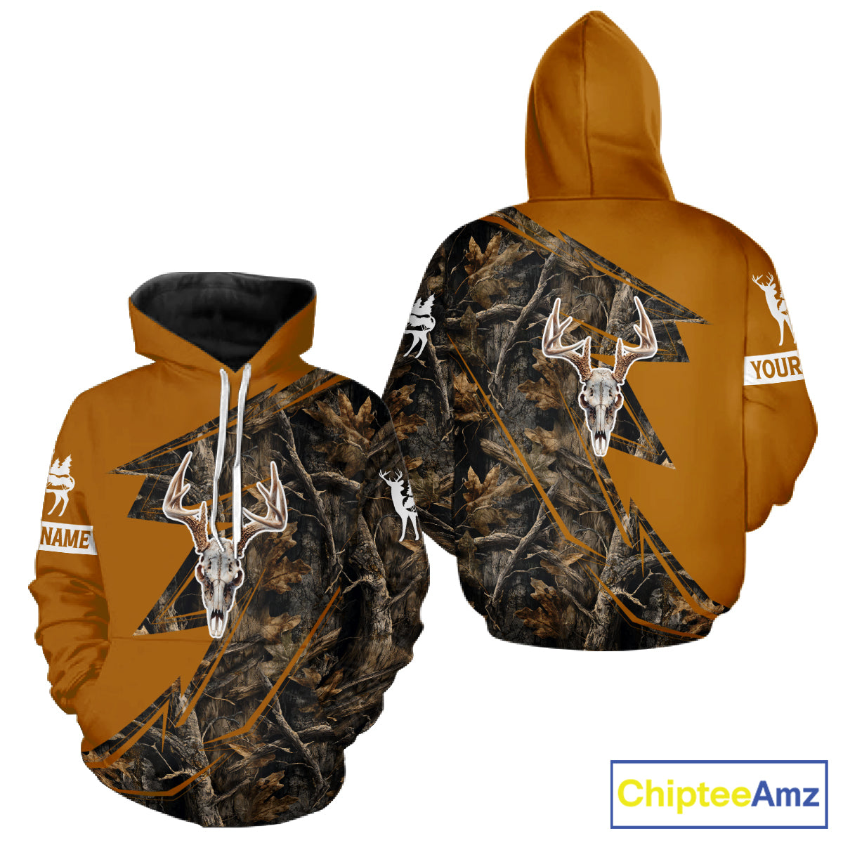 Beautiful Deer Hunting Orange Camo Deer Skull Full Printing Custom Name Shirts Hunting Gifts NHT199