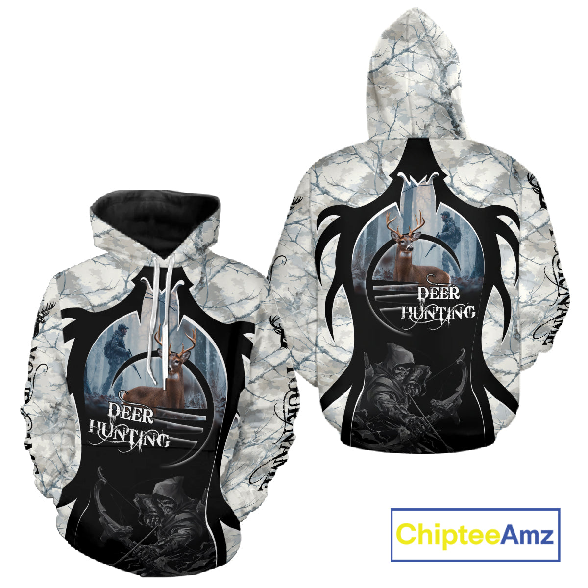 Best Buck Deer Hunting Clothes Winter Camo Grim Reaper Design Custom Name For Hunters NHT44