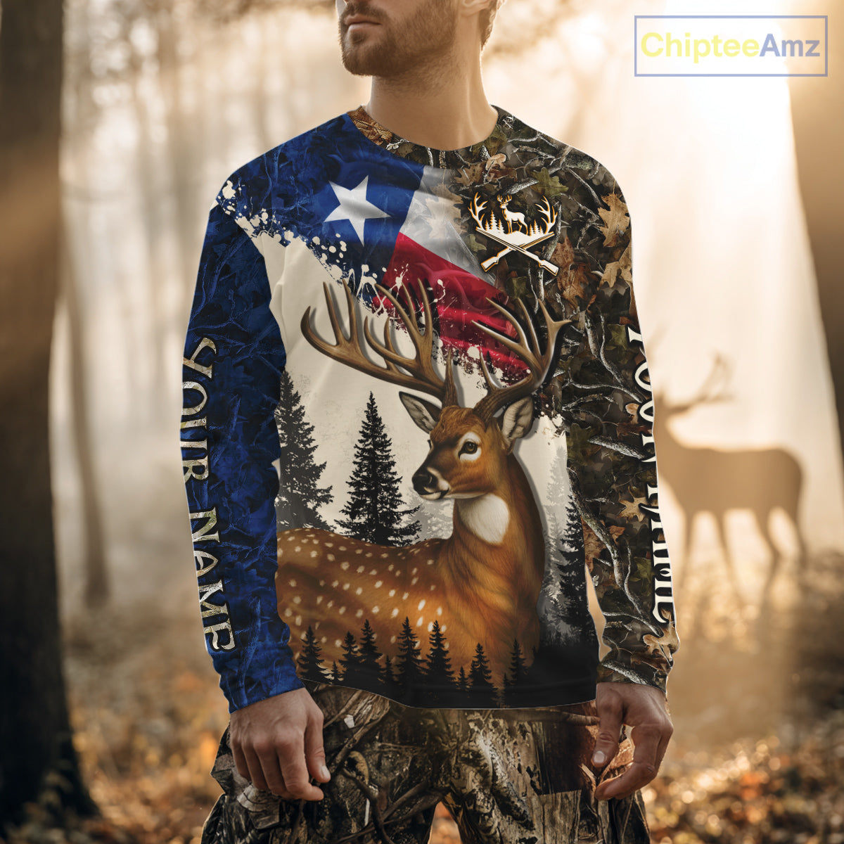 Best Custom Deer Hunting Shirt 3D Camo with Texas Flag & Big Buck Personalized Hunting Gifts NHT34