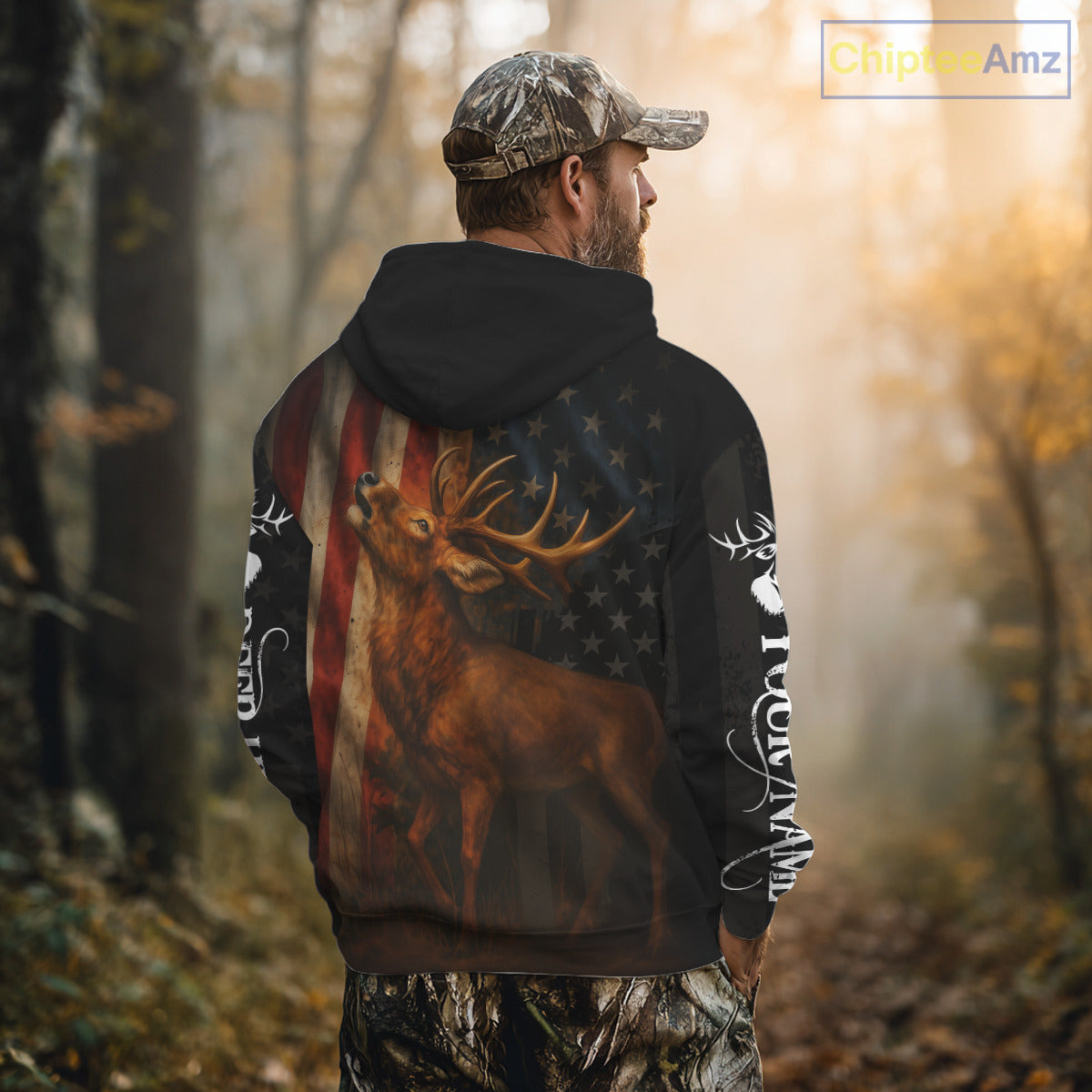 Best Season Deer Hunting Shirt Black with US Flag 3D Custom Name Clothes For Hunters NHT92