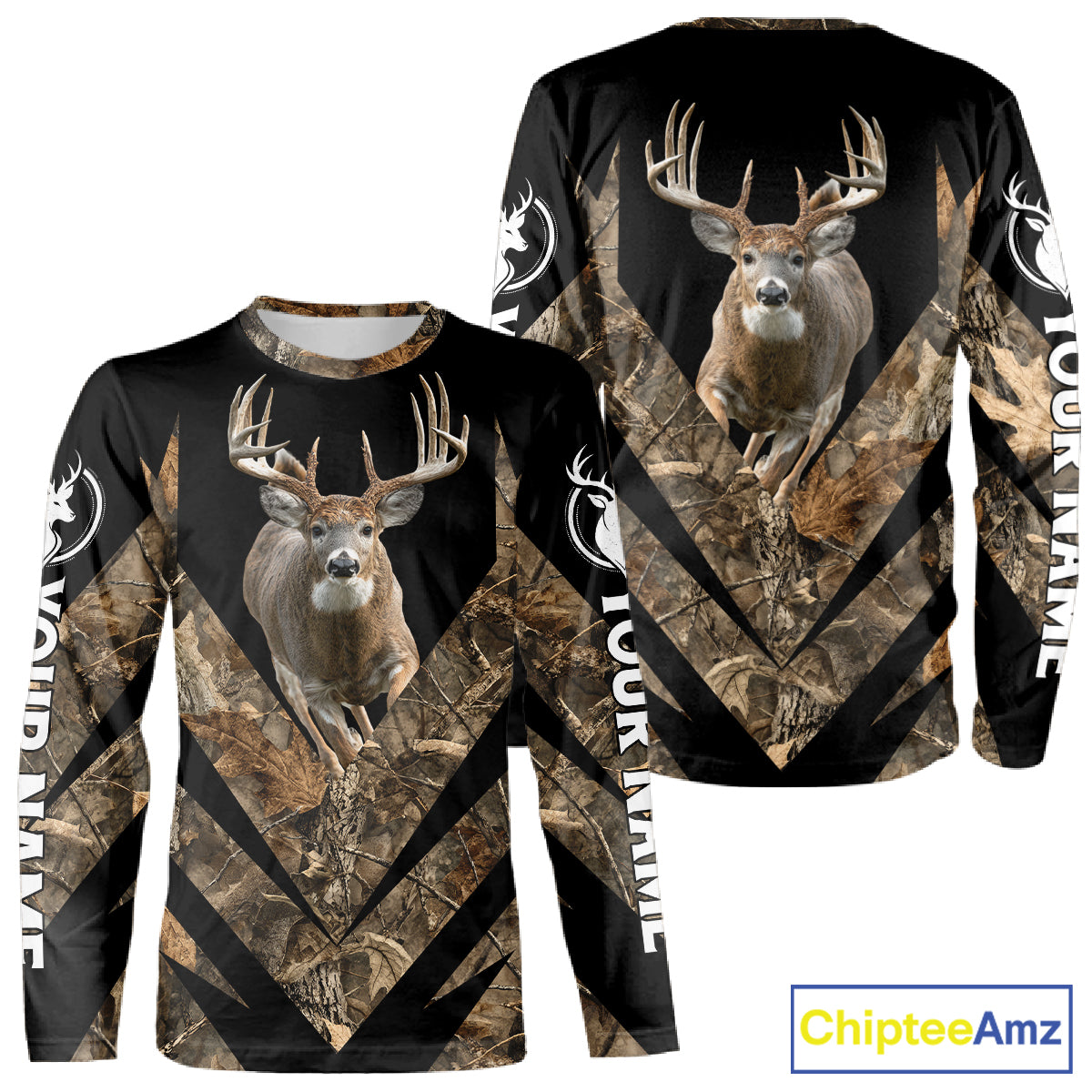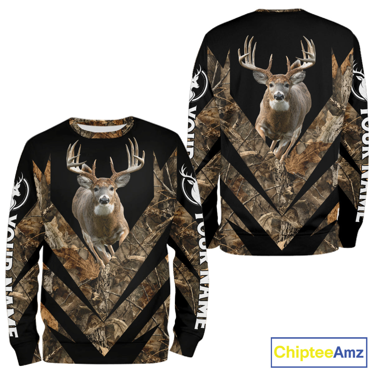 Customized Name Whitetail Deer Hunting Jump Shirt, Hunting Hoodie For Men NHT354