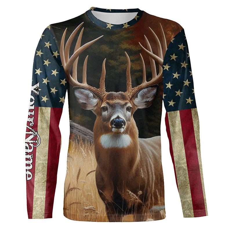 Deer Hunting american flag patriotic Custom Name 3D All over print shirts Plus Size NQS820