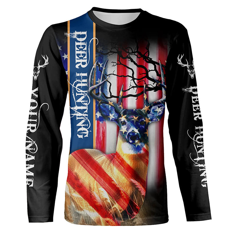 Deer Hunting American flag Patriotic Custom name Shirts, Deer hunting shirt, Gifts for hunters FSD344
