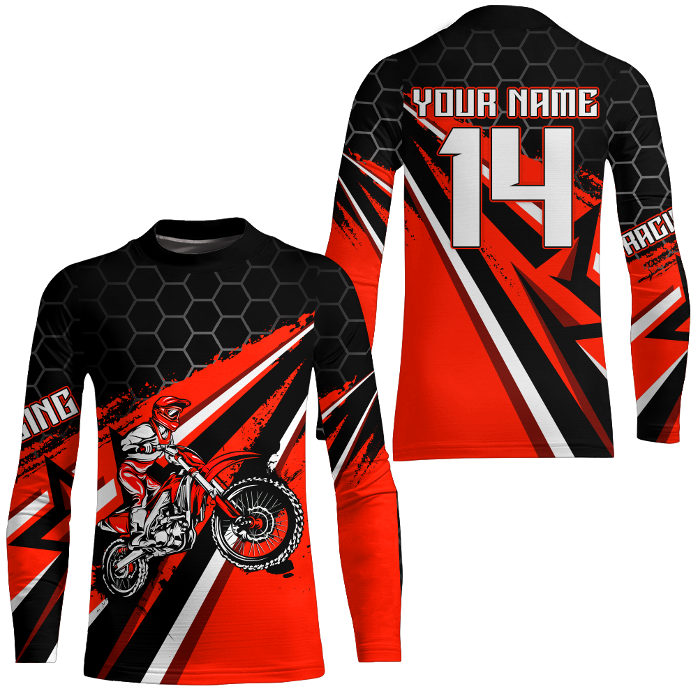 Custom Dirt Bike Jersey Red UPF30+ Kid Motocross Shirt Boys Girls MX Jersey Men Women Motorcycle PDT595