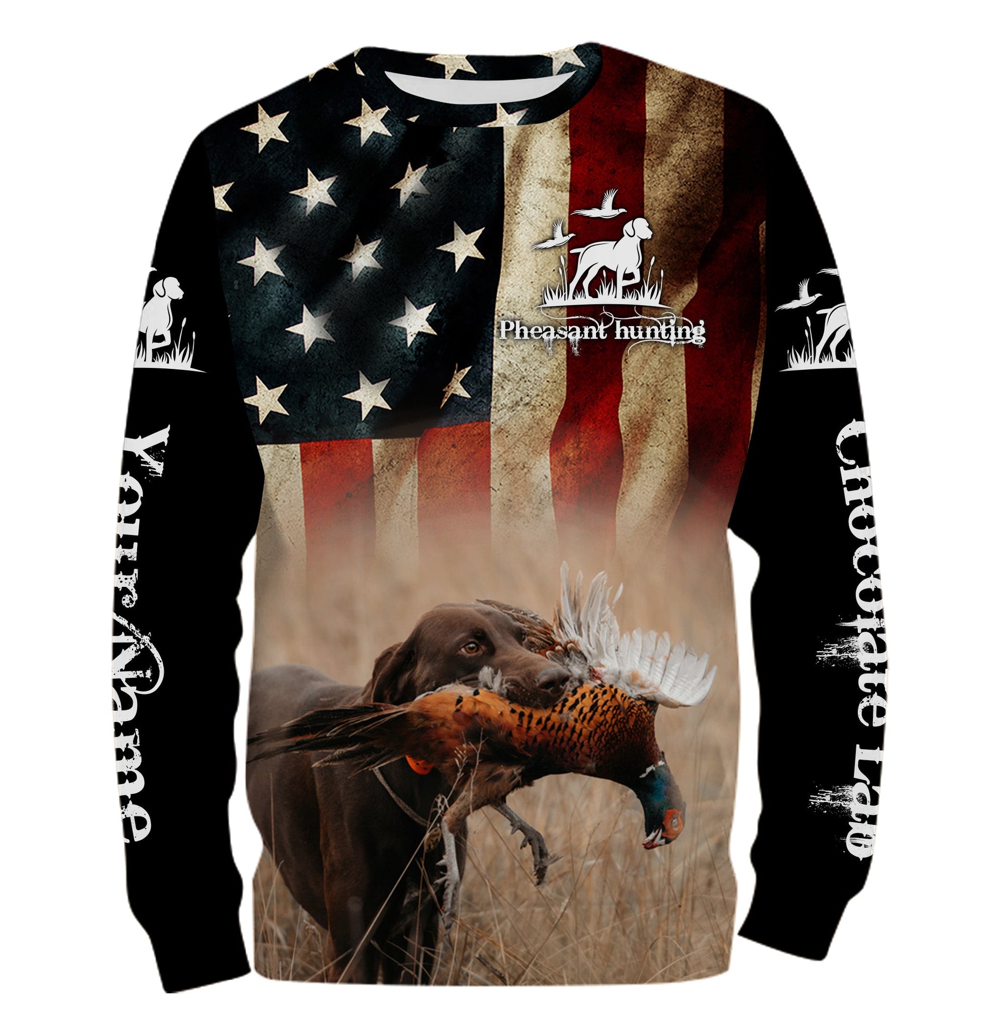 Pheasant Hunting with Chocolate Labrador American flag All over printed Shirts, Lab hunting shirt FSD3560