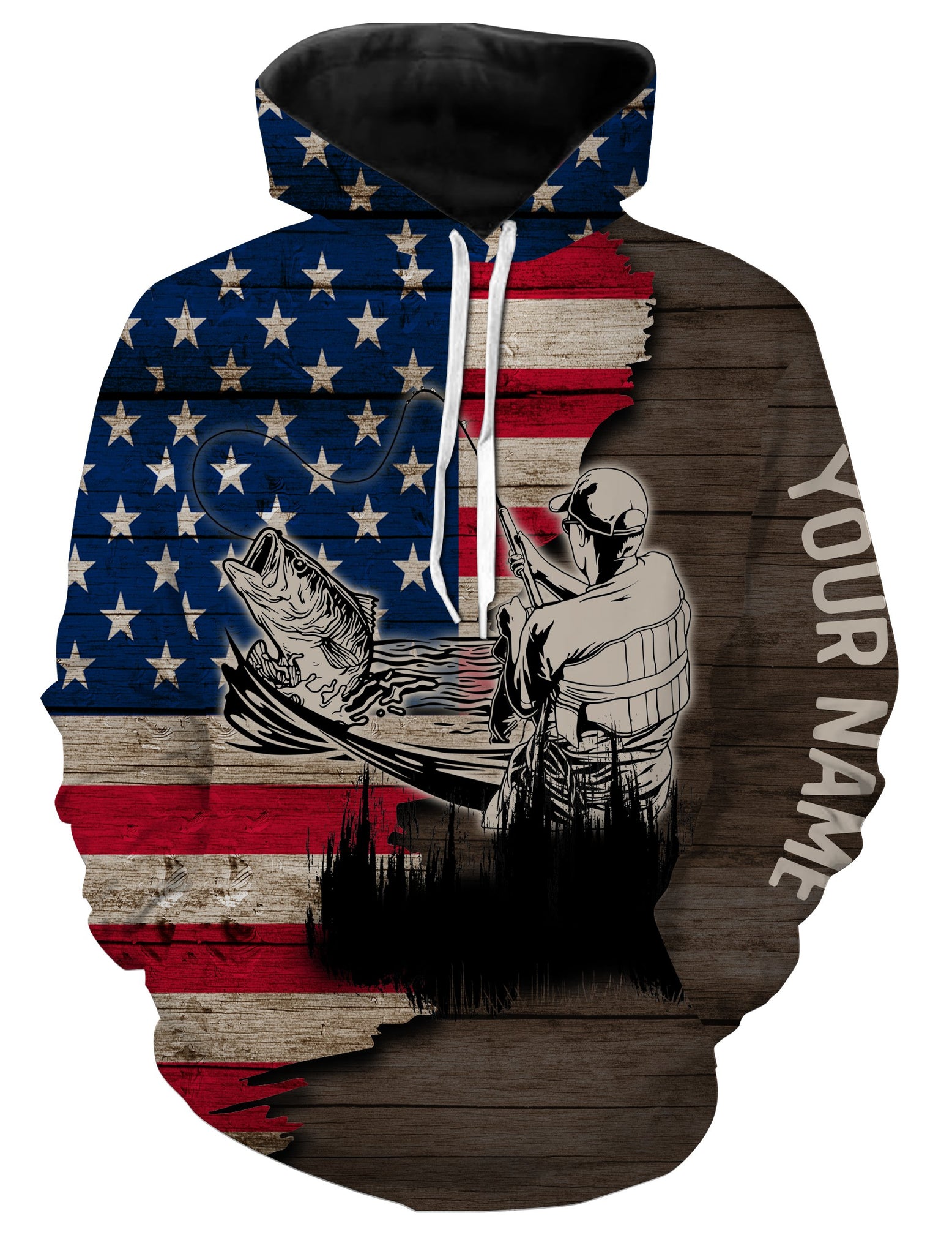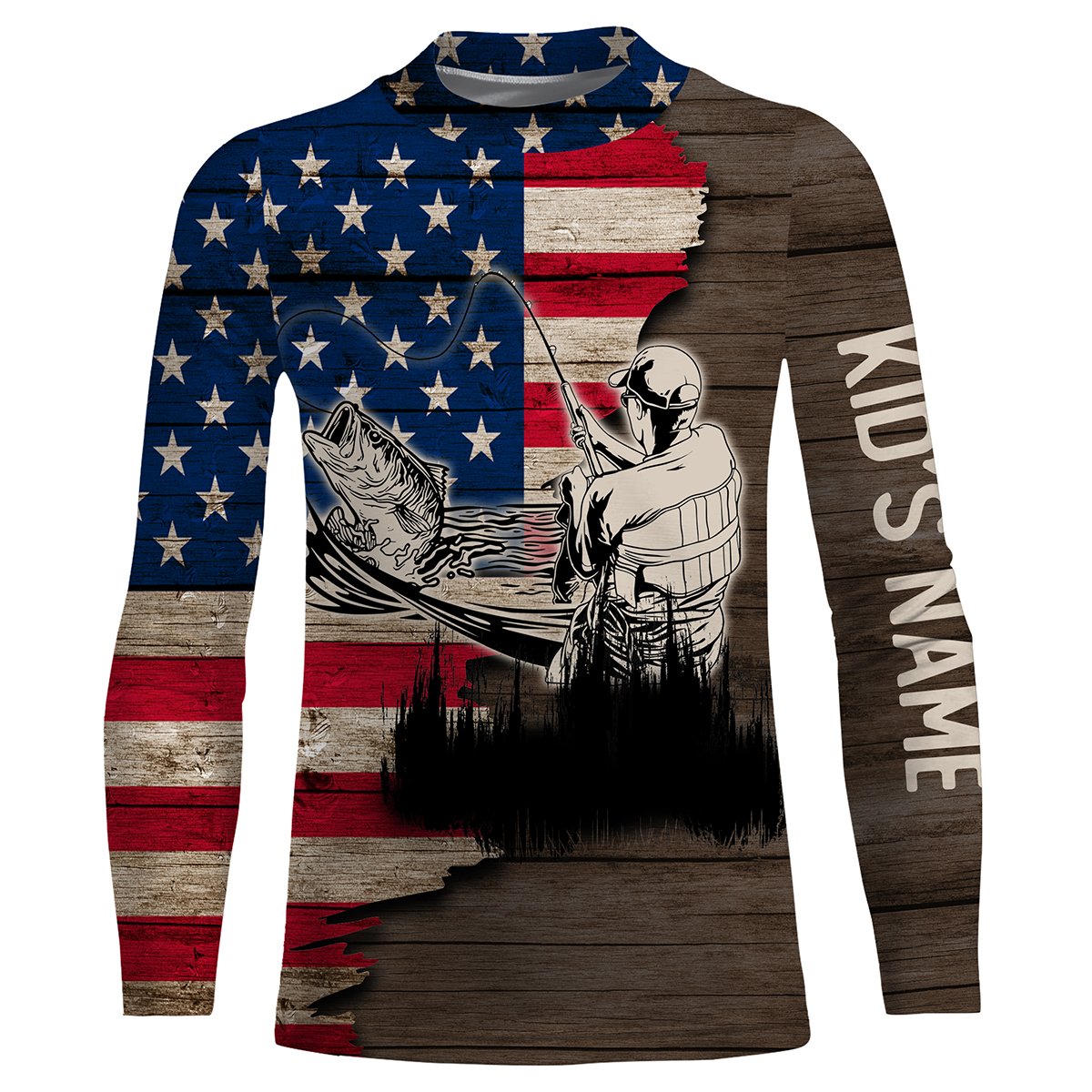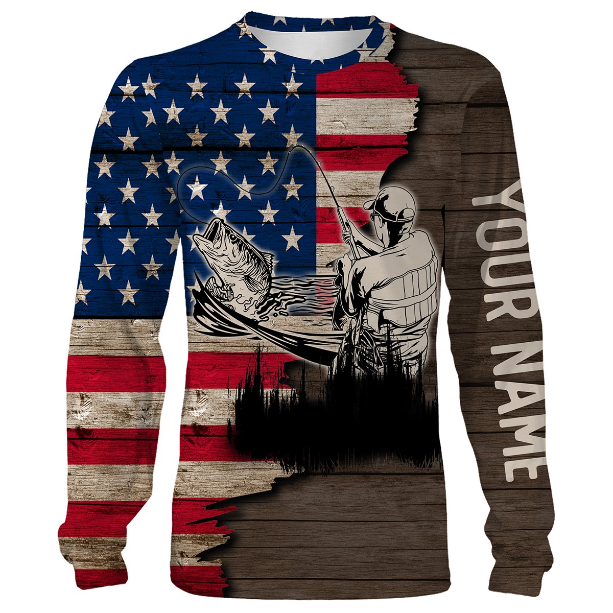 Largemouth Bass Fishing American Flag Customize Name All Over Printed Shirts Personalized Fishing Gift For Adult And Kid NQS385