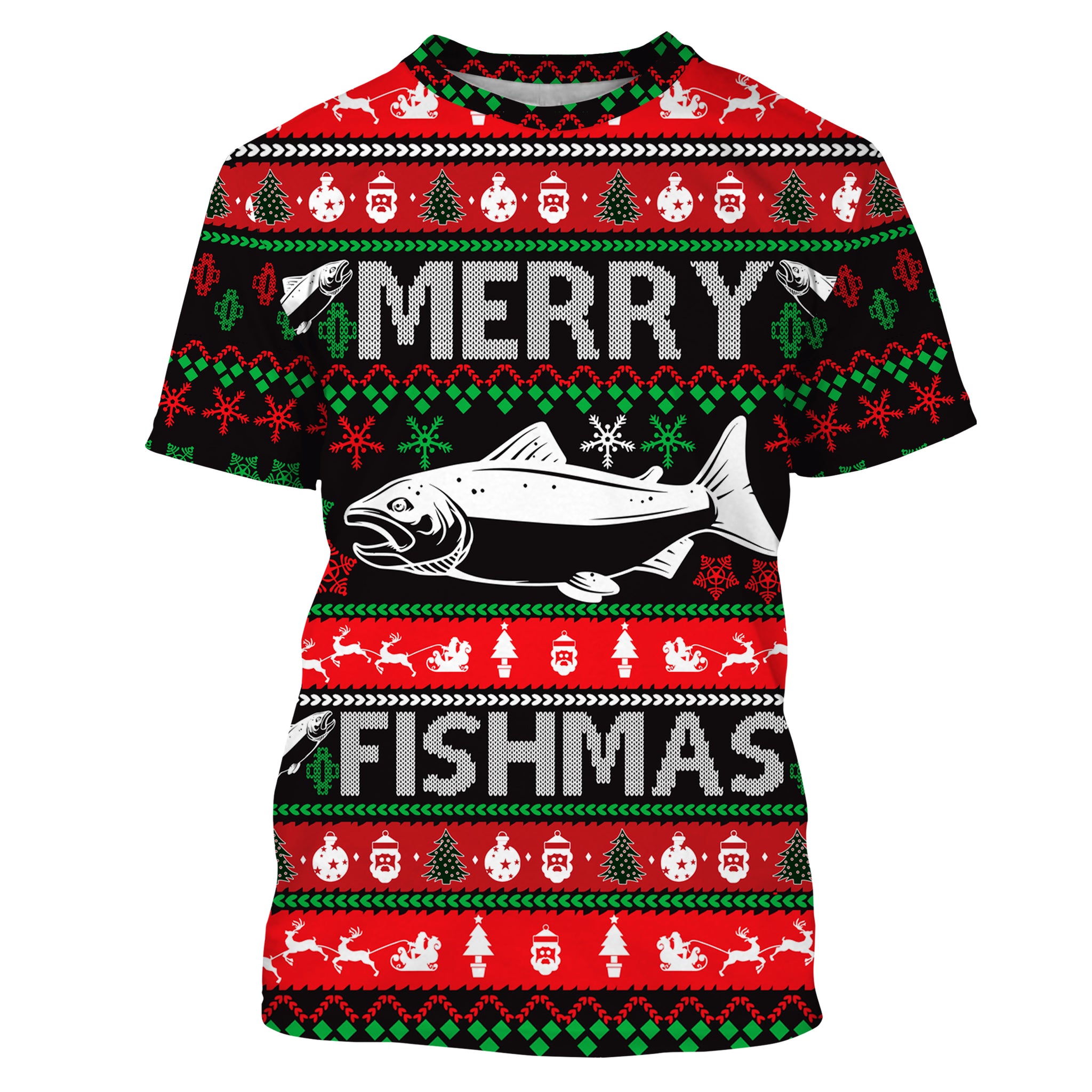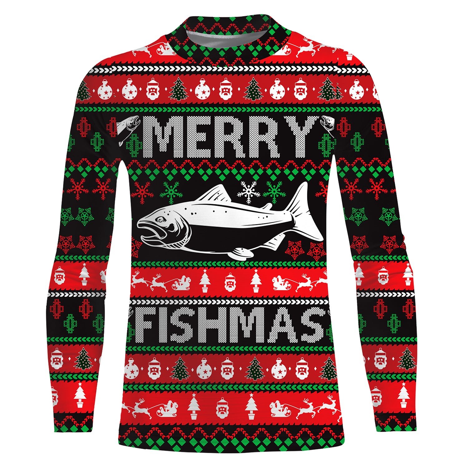 Merry Fishmas funny ugly Christmas salmon fishing shirt long sleeves Christmas gift NQS2350