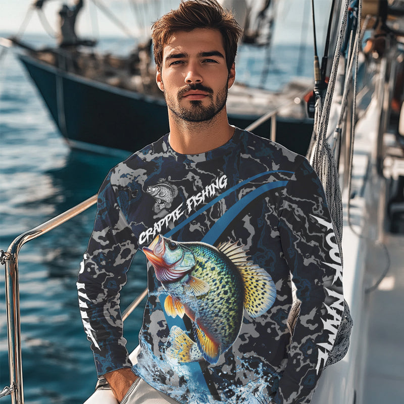 Custom Crappie Fishing Camo Long Sleeve Fishing Shirts, Personalized Crappie Fishing Team Jerseys NQS9678