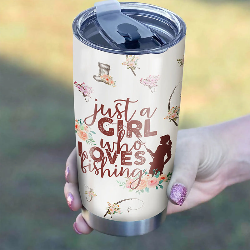 1PC Just a girl who loves fishing Stainless Steel Fishing Tumbler Cup, customize name fish tumbler - NQS3145