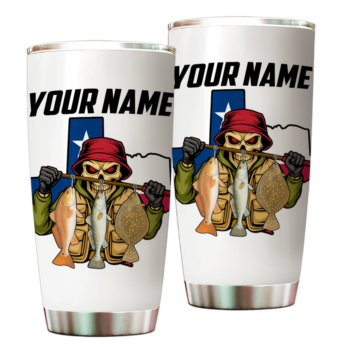1PC Texas Inshore Slam Fish Reaper Fishing Custom Name Redfish, Trout, Flounder Fishing Tumbler Cup NQS9897