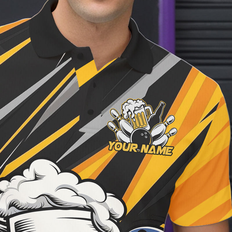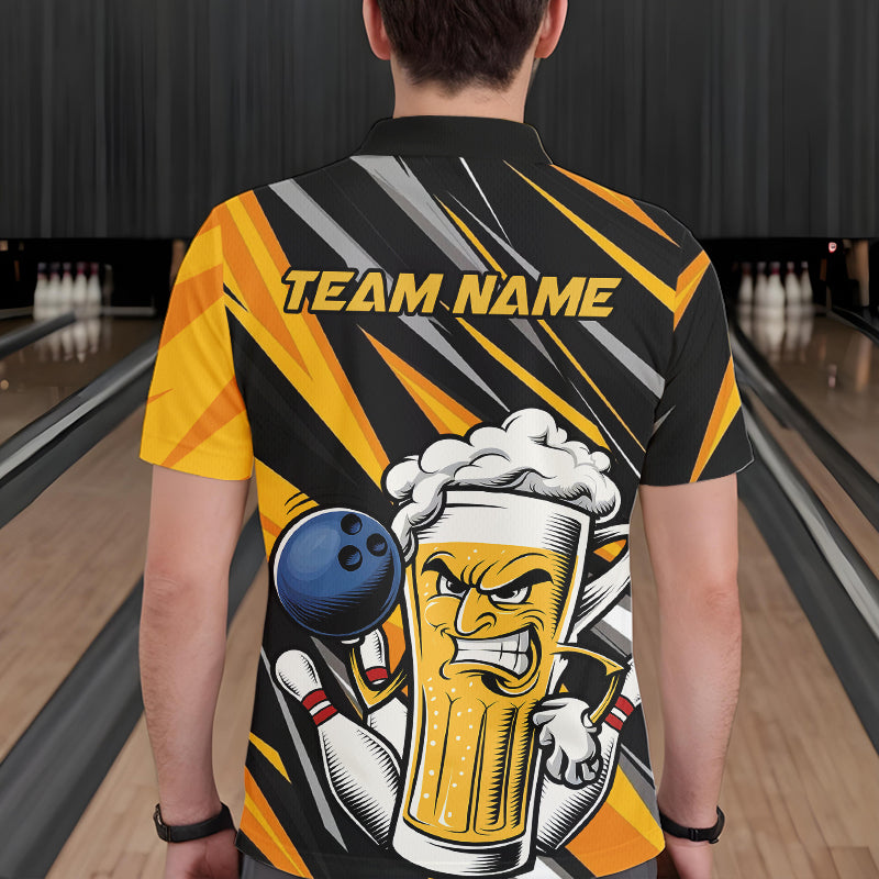 Custom Black And Yellow Funny Beer Bowling Men Polo Shirts, Angry Beer Glass Bowling Jersey IPHW8933