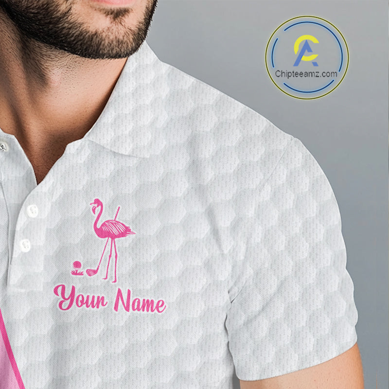 Funny Mens golf polo shirt custom pink and white flamingo pattern white golf shirts NQS8610