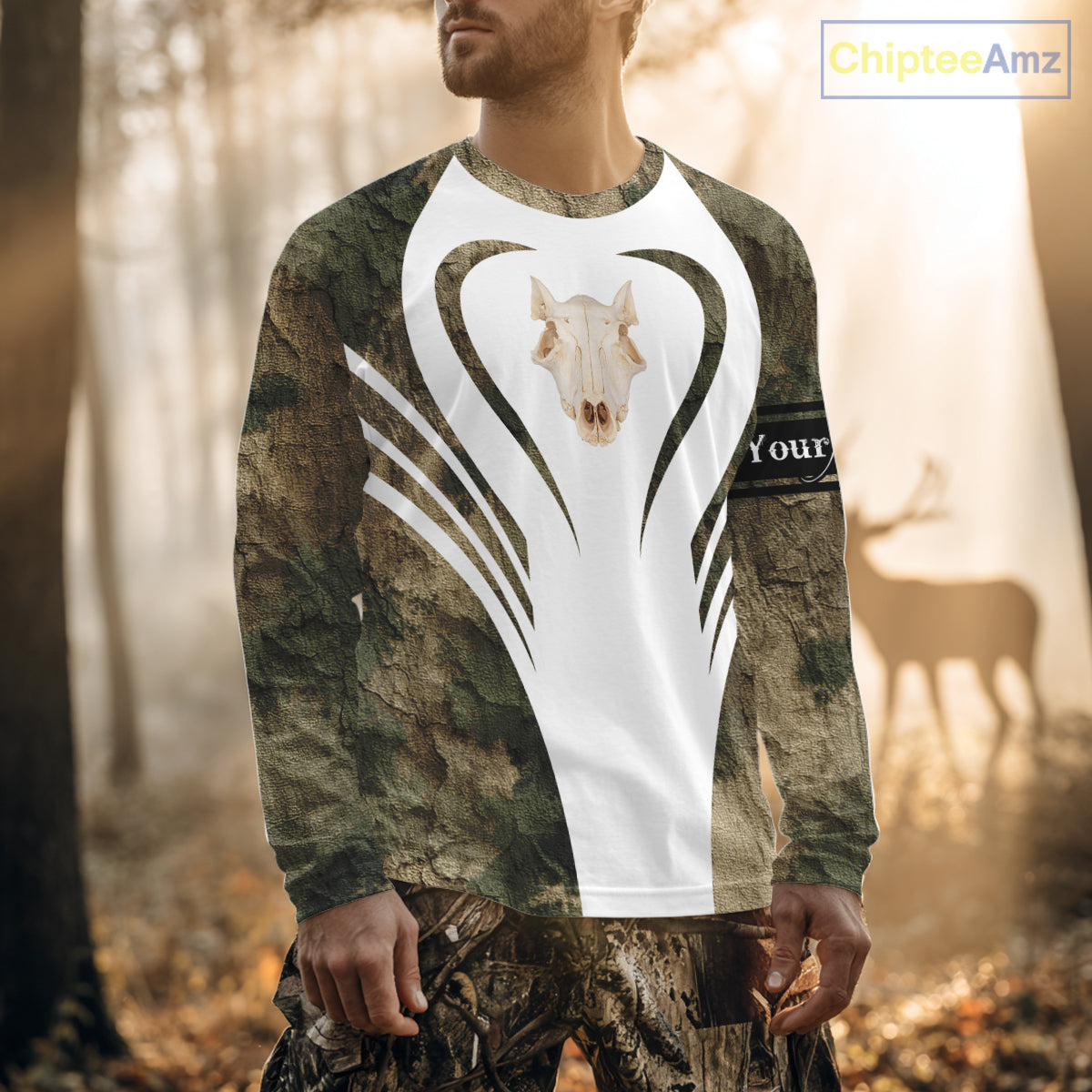 Best Wild Boar Hunting Shirt Camo Custom Name Skull Boar Hunting Clothes For Hunters NHT169