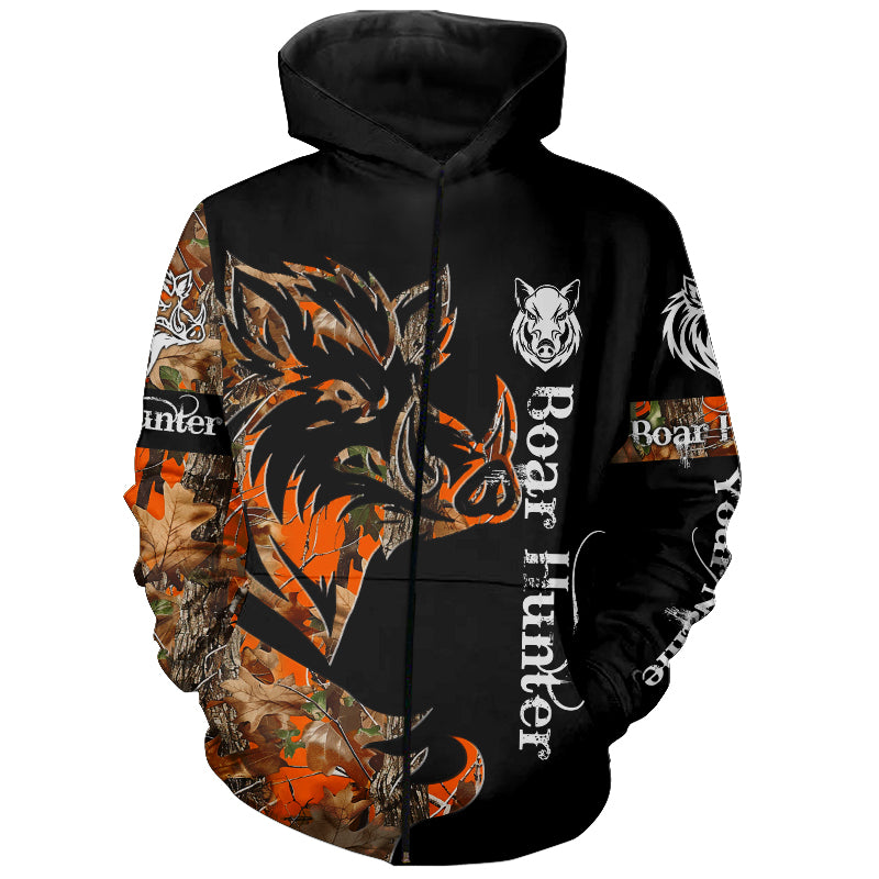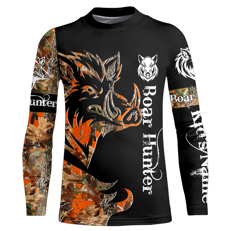 Boar Hunting Black Orange Camo 3D all over Print Shirt, Boar Hunting Apparel NQS72