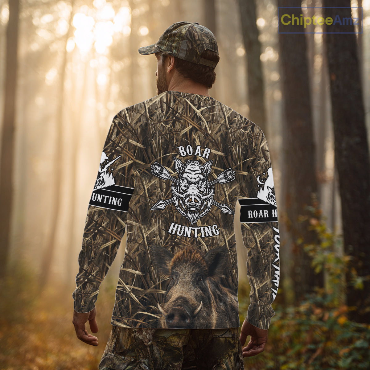 Designed for boar hunters and outdoor enthusiasts, this shirt blends style, comfort, breathable and funtionality in one. The unique hunting-inspired design can be personalized with your name, along with details like the American flag, camouflage patterns, and more - making it the perfect gift ideas for hunters during boar hunting season.