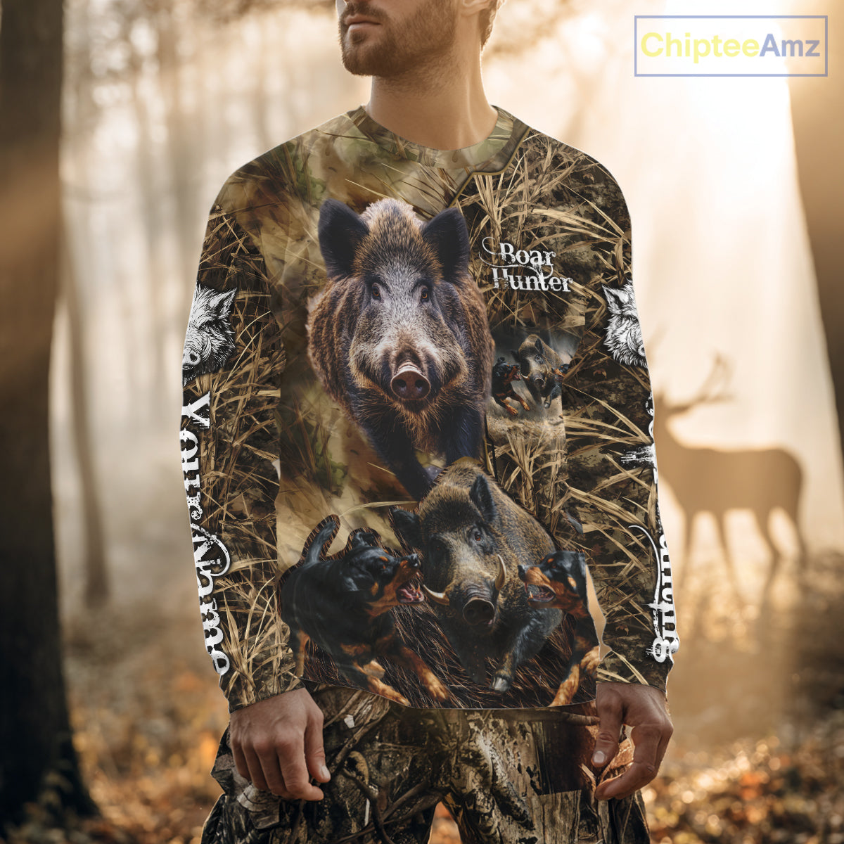 Wild Boar Hunting Camo Custom Name Shirts, Personalized Boar Hunting Clothes, Hunting Gifts NBT108