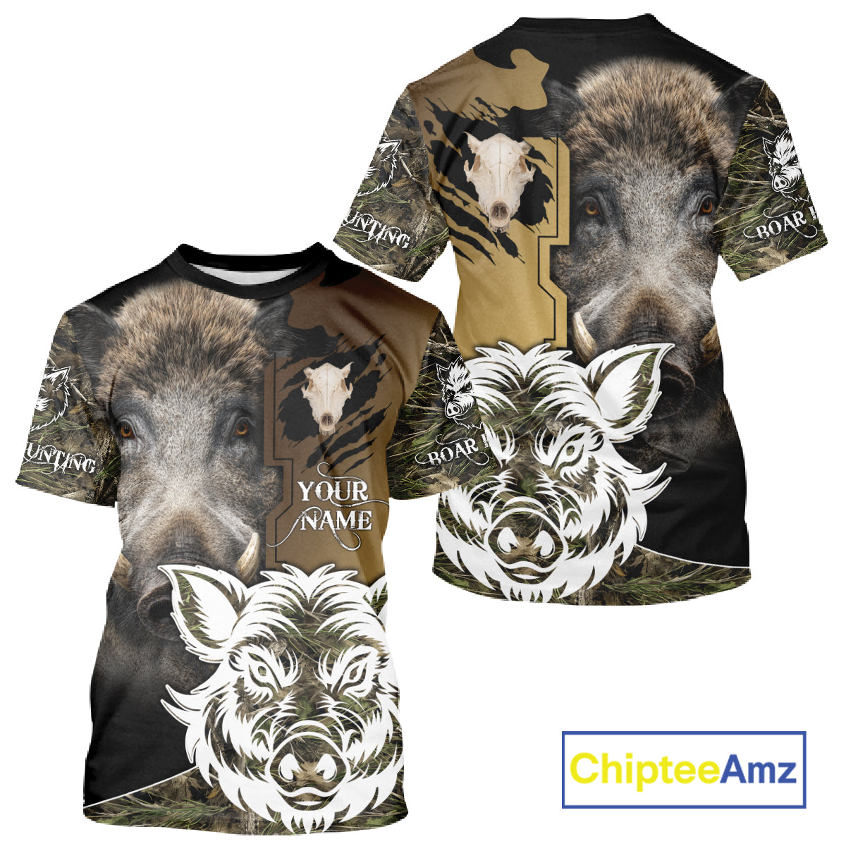 Wild Boar Hunting Shirt Custom Name Camo Skull Hunting Clothes For Hunters Gift NHT110