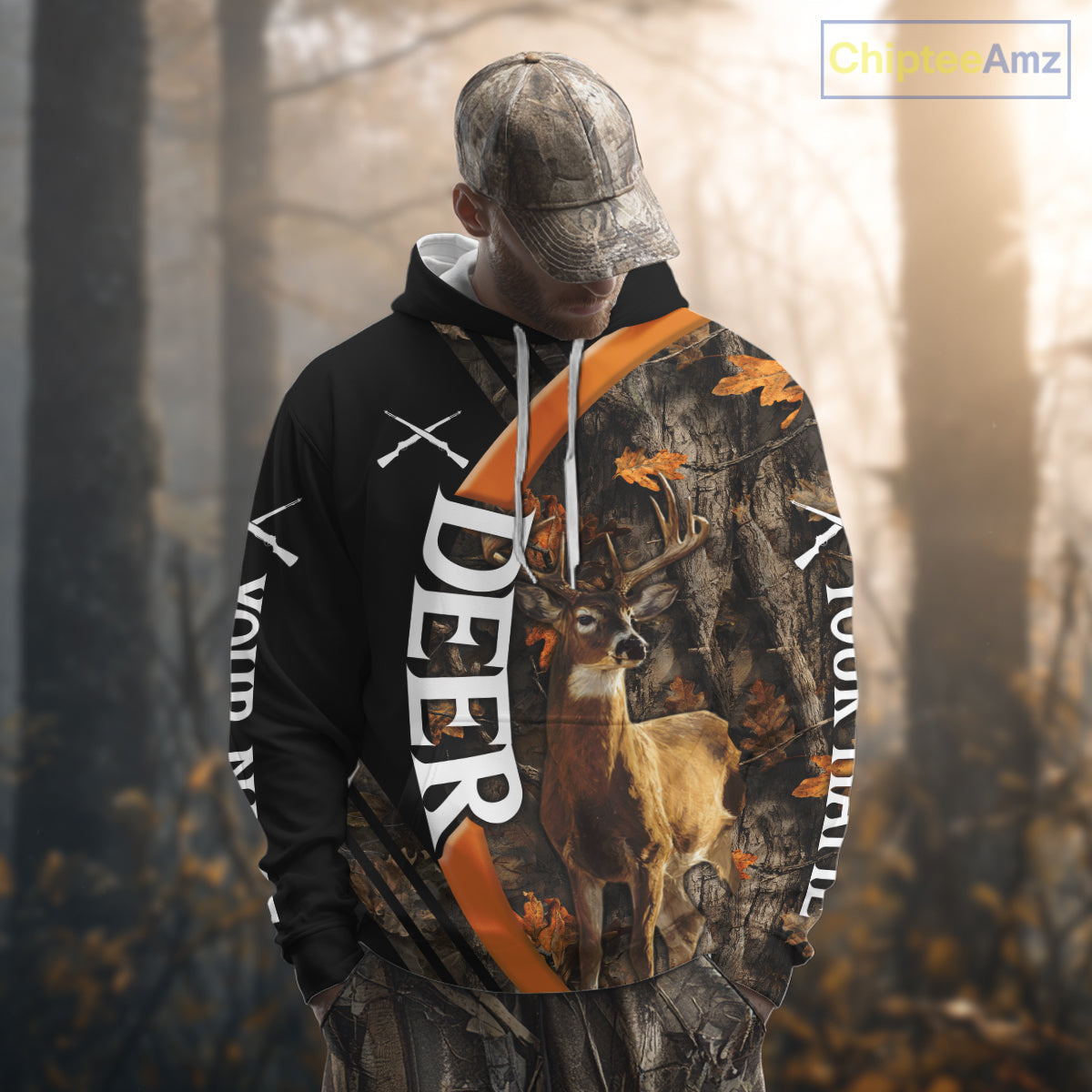 Whitetail Deer Hunting Shirt Custom Name Orange Autumn Leaves Camo, Season Hunting Hoodies For Men NBT307
