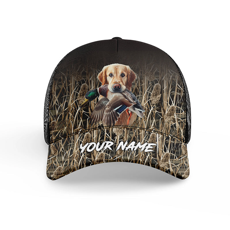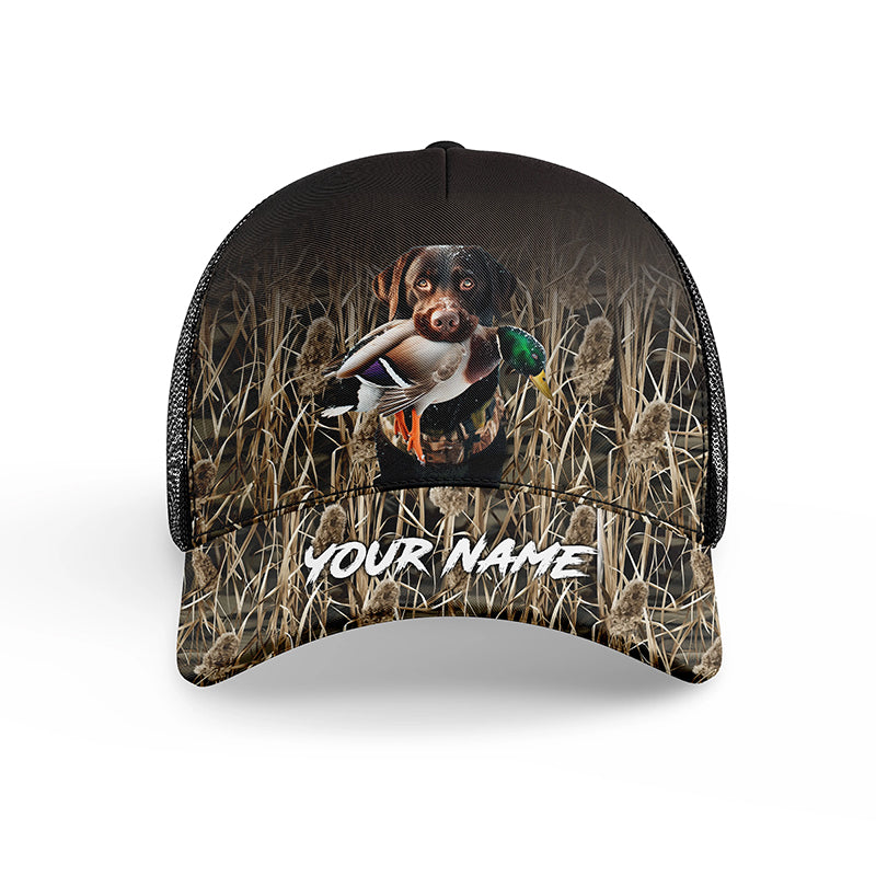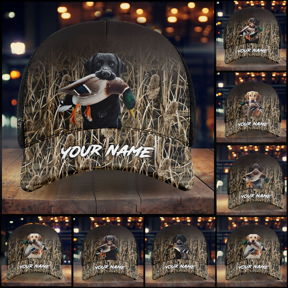 Duck Hunting Dogs Waterfowl Camo Custom Name Hat, Duck Hunting Mesh Back Cap, Hunting Hat FSD4562