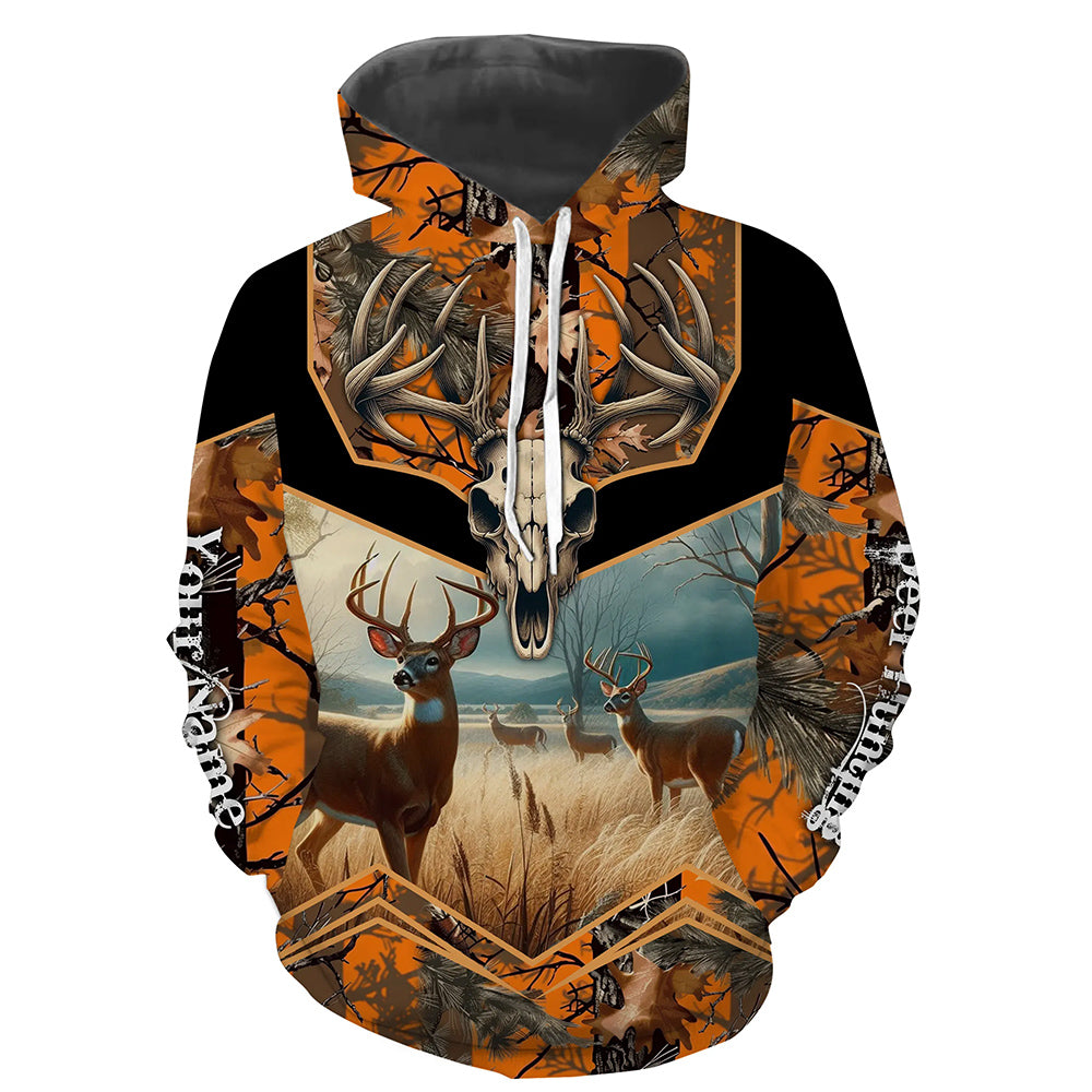 Deer Hunting Camo Custom Name 3D All over print Hoodie Orange Black - NQS64