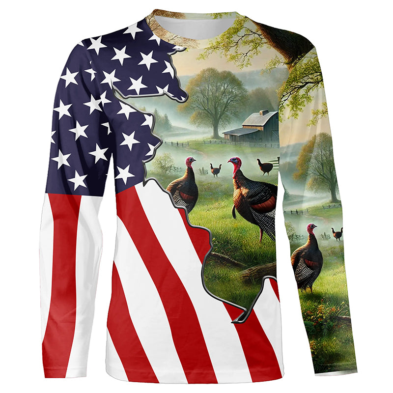 Wild Turkey Hunting Camo 3D All Over Print Shirts American Flag Patriotic Hunting gifts NQS100