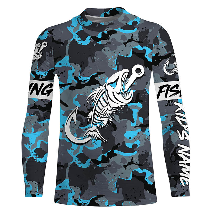 Blue Camo fishing shirt Fish hook skull Custom Name sun protection mens long sleeve fishing shirt NQS3906