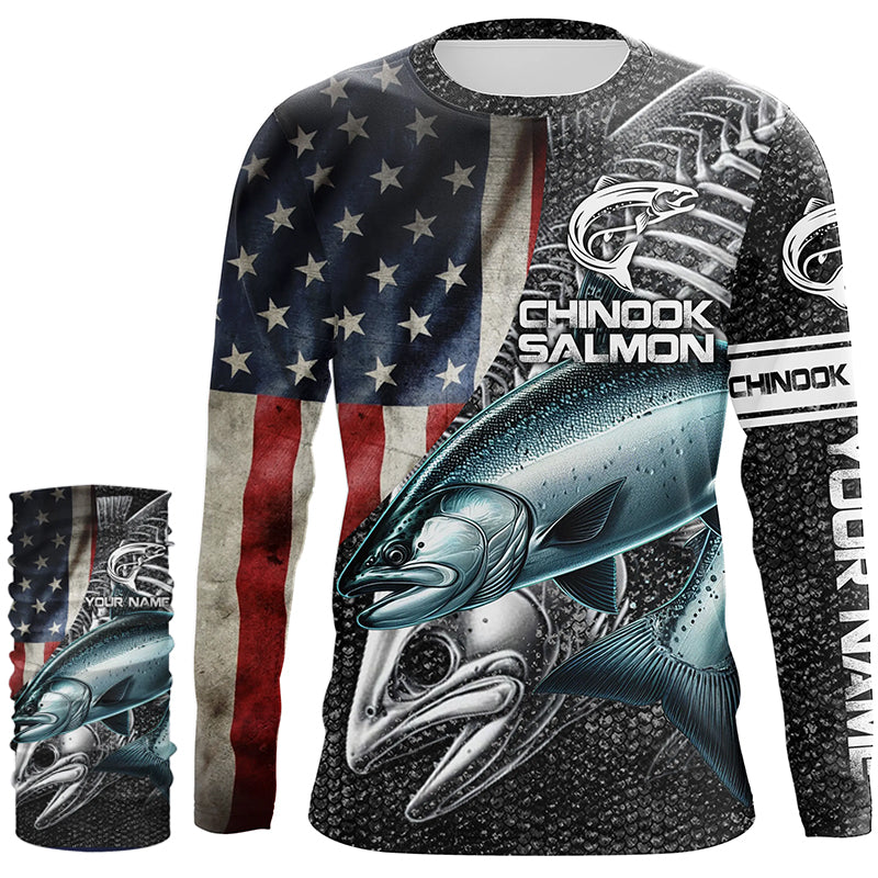 Chinook salmon fishing American flag patriotic fishing shirts for men Performance Customize NQS1693