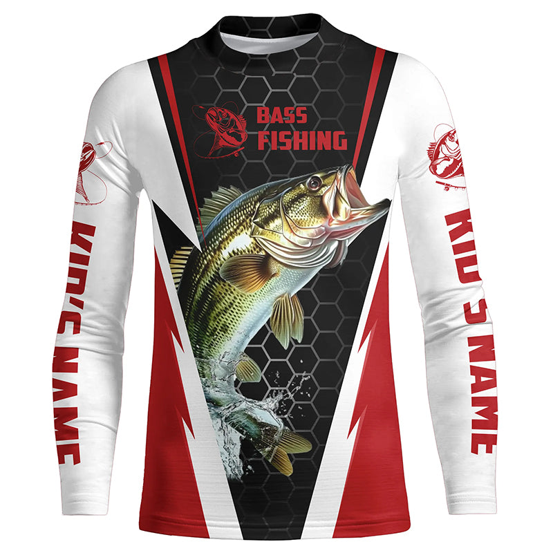 Personalized Bass Fishing Jerseys, Bass Fishing Long Sleeve Fishing Tournament Shirts | Red IPHW5725