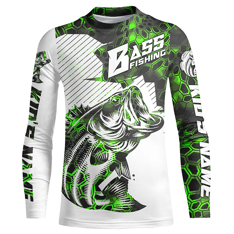 Personalized Bass Fishing Jerseys, Bass Fishing Long Sleeve Fishing Tournament Shirts | Green Camo IPHW5750