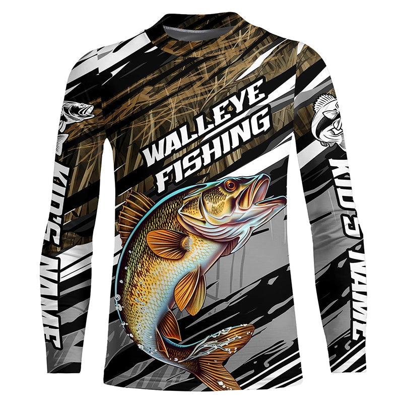 Walleye Fishing Camo Long Sleeve Fishing Shirts, Custom Walleye Tournament Fishing Jerseys IPHW5947