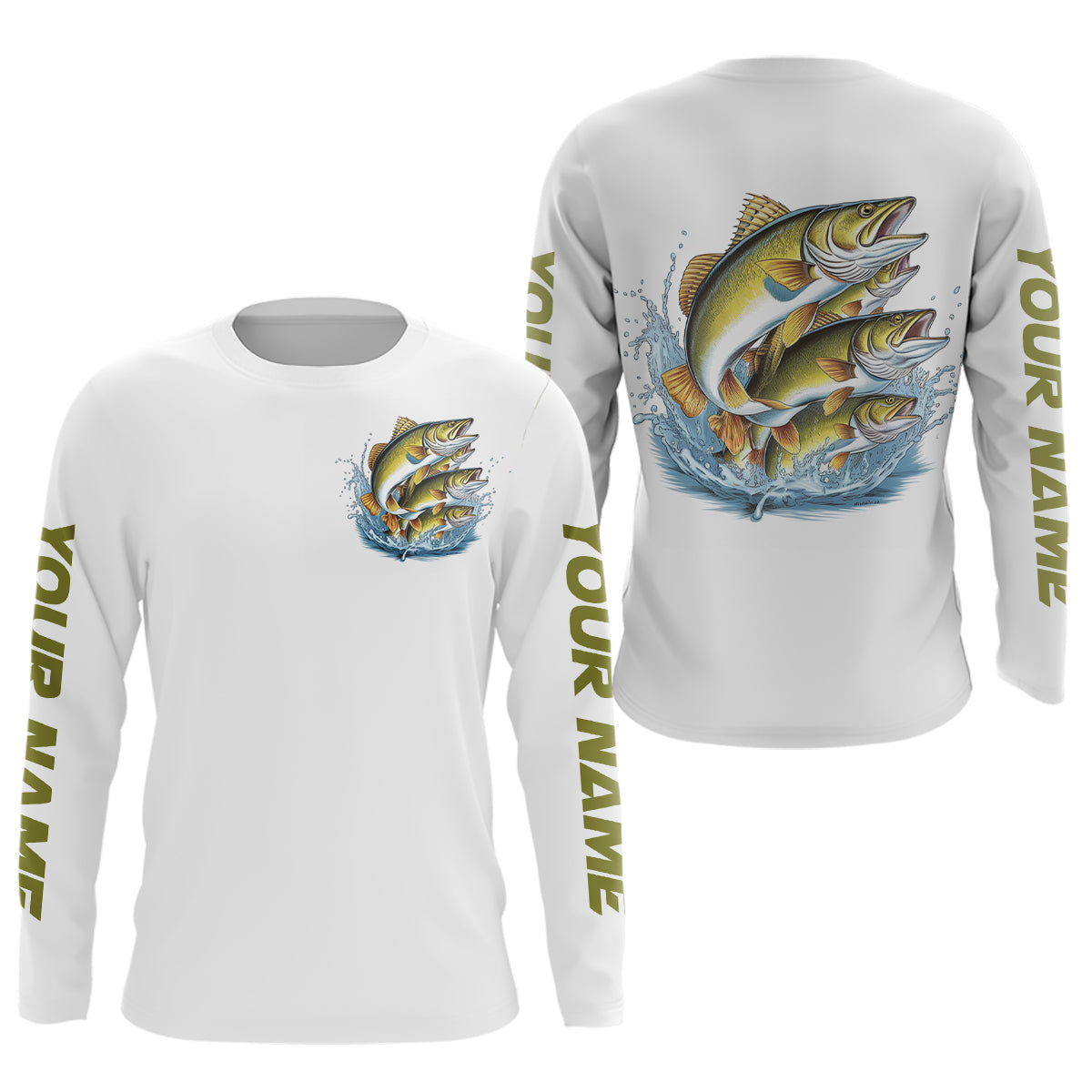 Walleye Fishes Custom Long Sleeve Fishing Shirts, Walleye Tournament Fishing Shirt IPHW7960