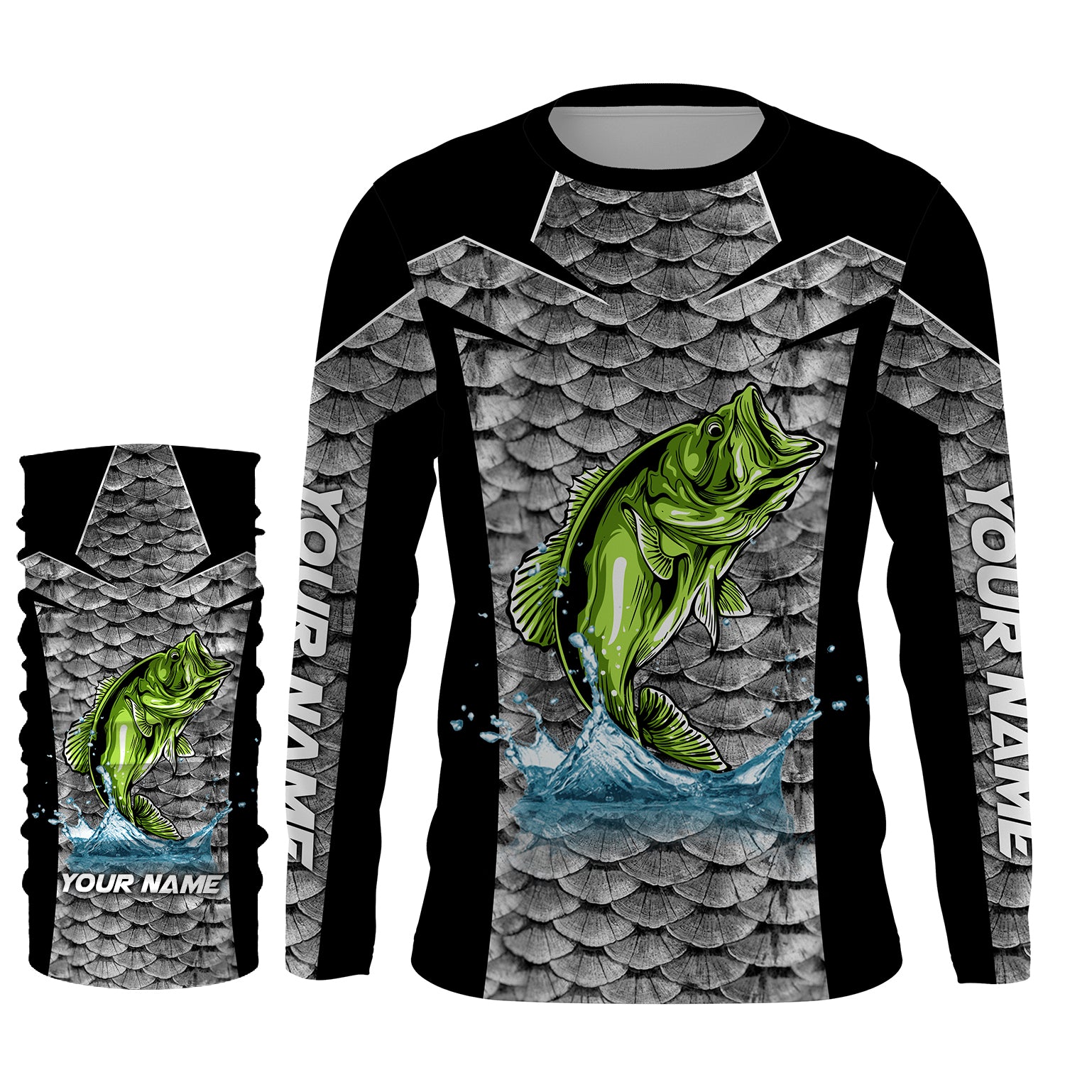 Personalized Bass Fishing jerseys, Bass Fishing scales Custom Long Sleeve Fishing tournament shirts - TTN37