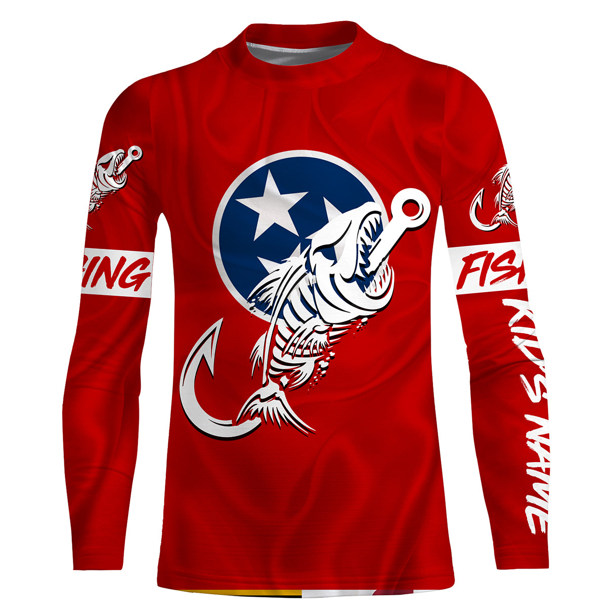 TN Fishing Custom Tennessee Flag Fish hook skull Custom sun protection fishing shirts for men, women NQS3320