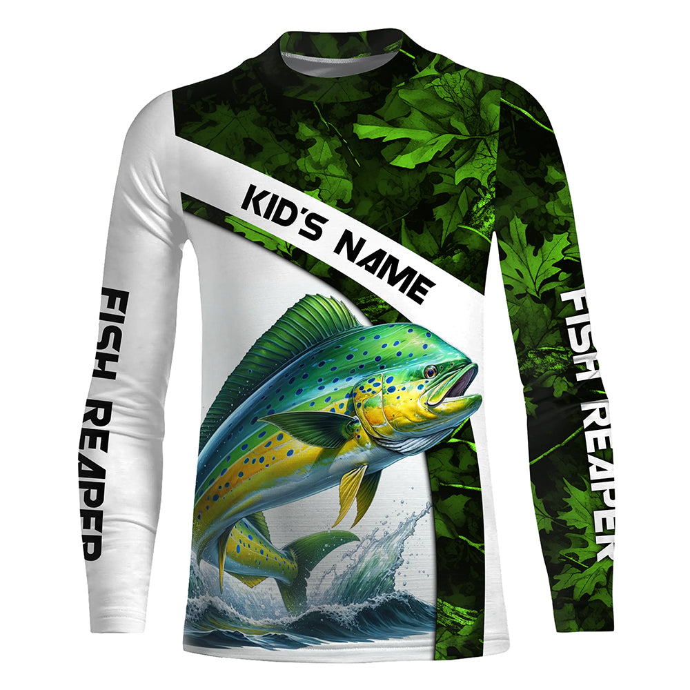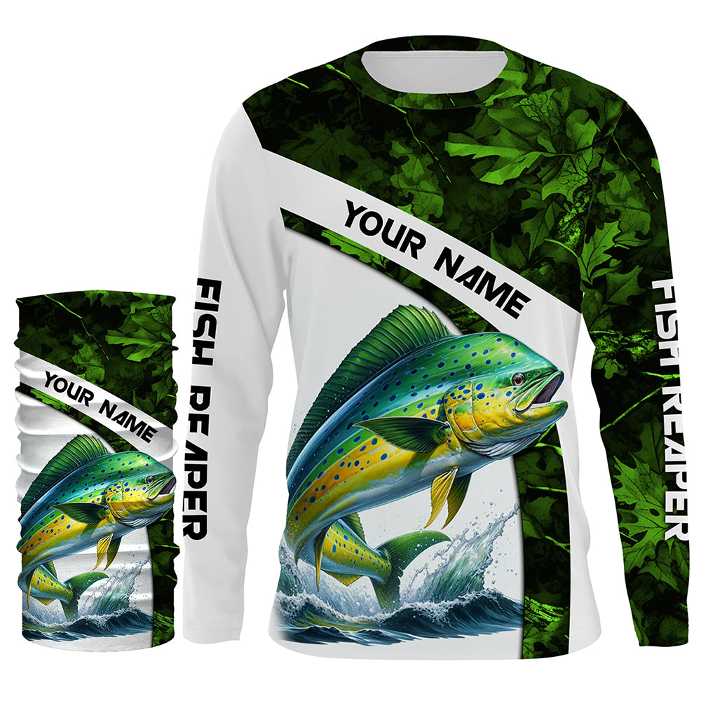 Mahi mahi ( Dorado) fishing Green Camo Customize name UV protection long sleeves fishing shirts NQS803