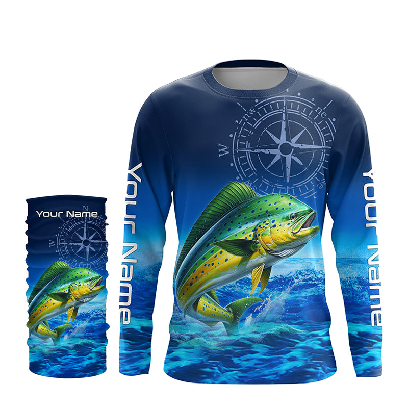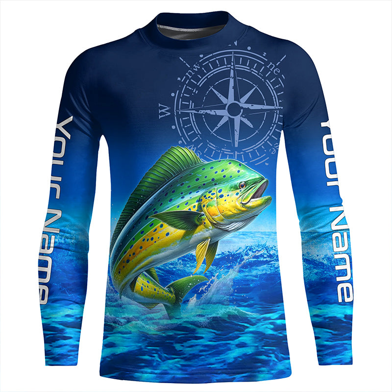 Personalized Mahi mahi Saltwater Blue Long Sleeve Performance Fishing Shirts, Dorado tournament Shirt NQS5785