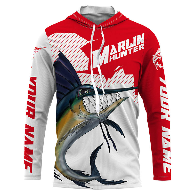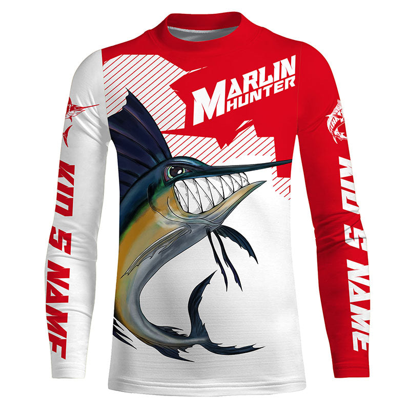 Marlin hunter Fishing jerseys, Custom Angry Marlin Long sleeve performance Fishing Shirts |red IPHW3405