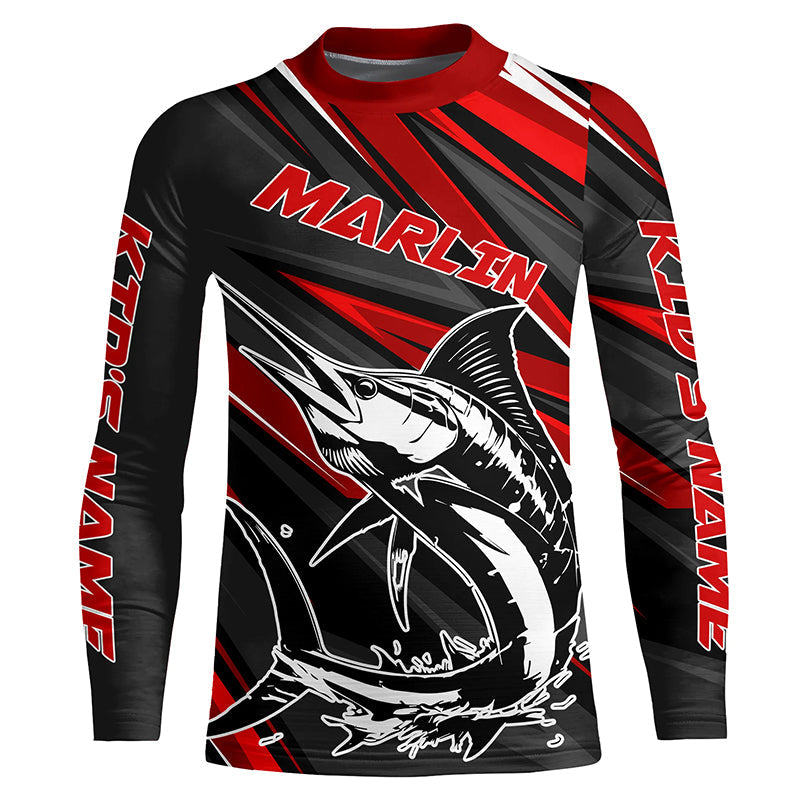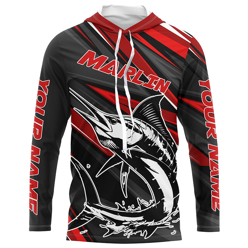 Black And Red Marlin Fishing Jerseys, Custom Marlin Long Sleeve Performance Fishing Shirts IPHW6900