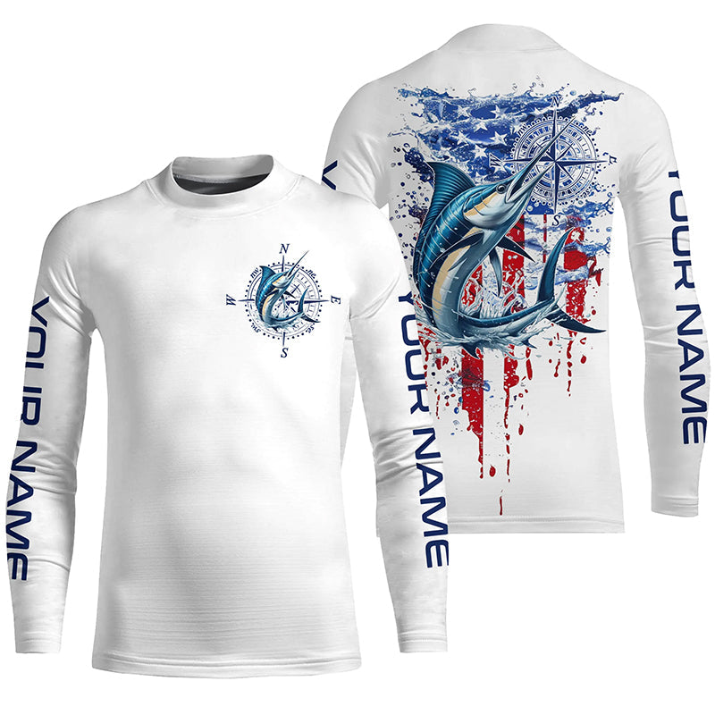 American Flag Marlin Fishing Custom Long Sleeve Fishing Shirts, Patriotic Saltwater Fishing Shirt IPHW7039