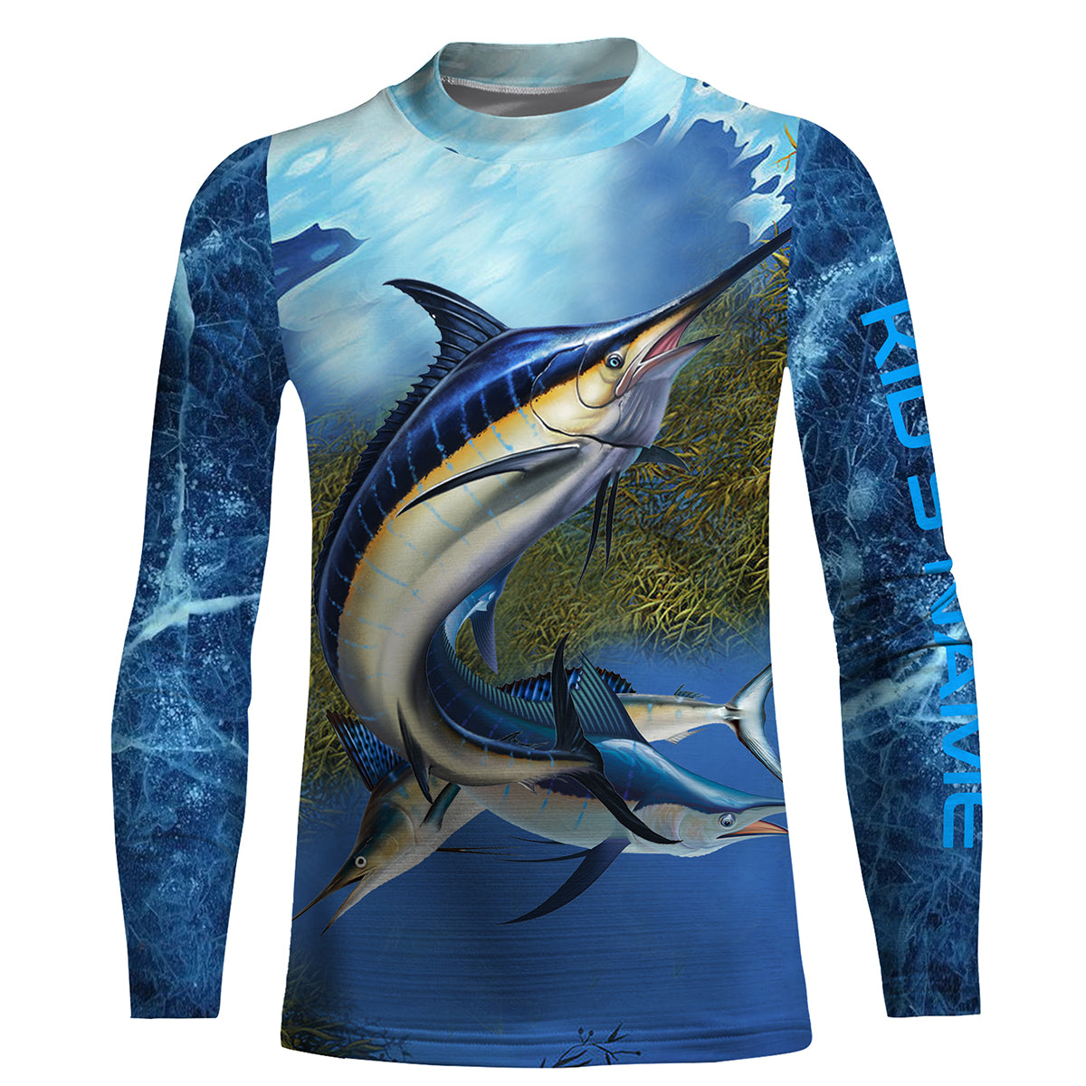 Marlin fishing blue deep sea Custom UPF fishing Shirts jersey, custom fishing shirts with hood NQS3217