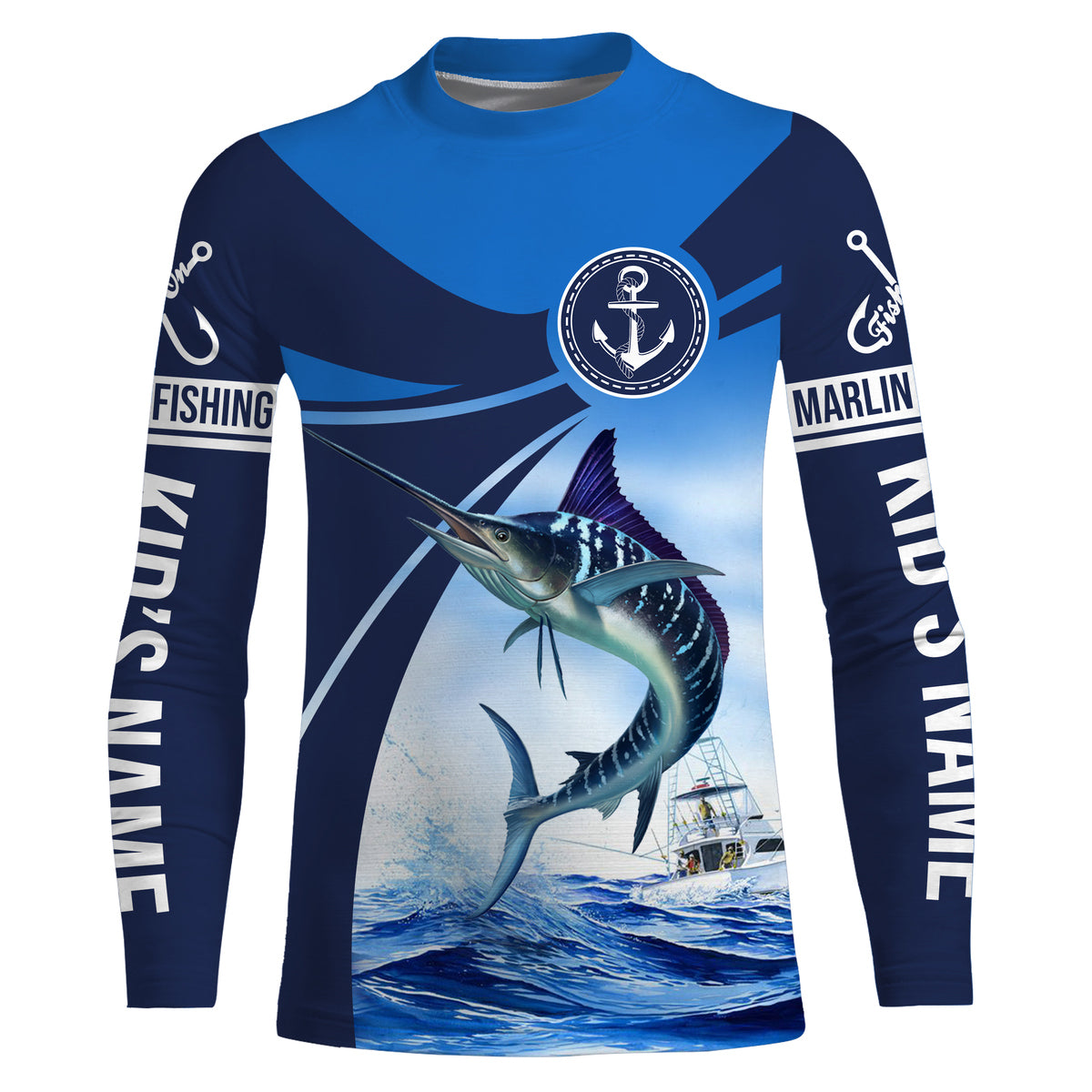 Marlin fishing blue sea underwater ocean saltwater Custom Name performance long sleeve fishing shirt NQS3744