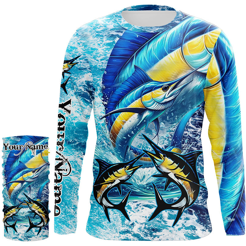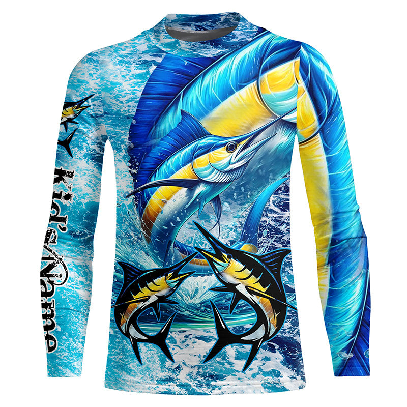 Marlin fishing scales blue sea water camo Custom UV protection performance long sleeve fishing shirts NQS8122