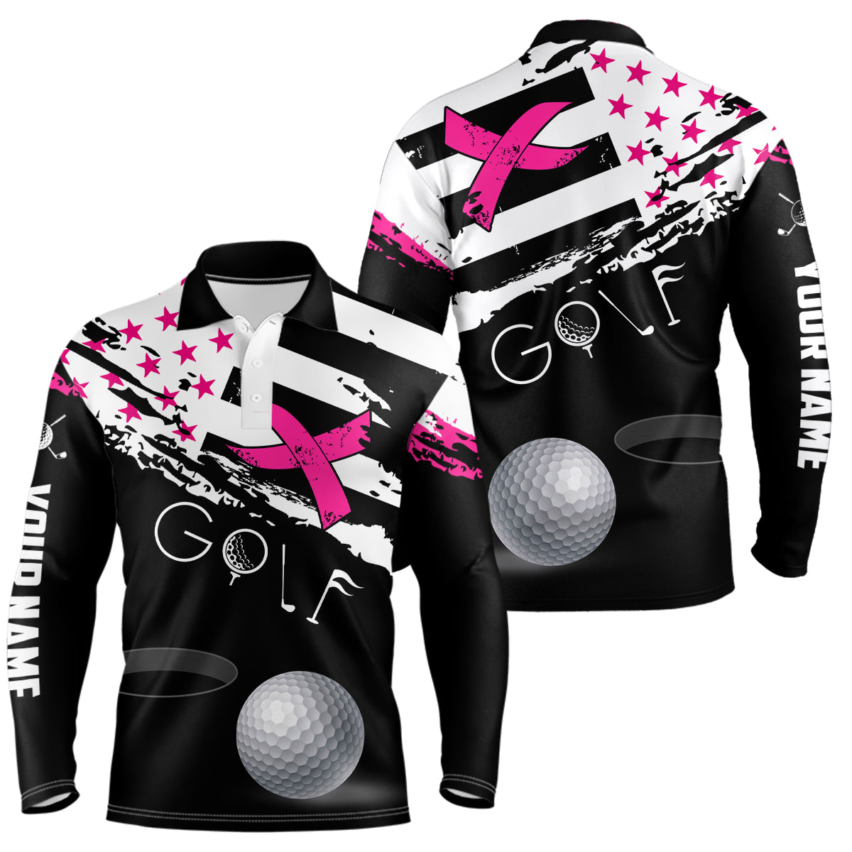 Breast Cancer Awareness American Flag Pink Ribbon Custom Mens Golf Polo Shirts Patriotic Golf Tops TDM2494