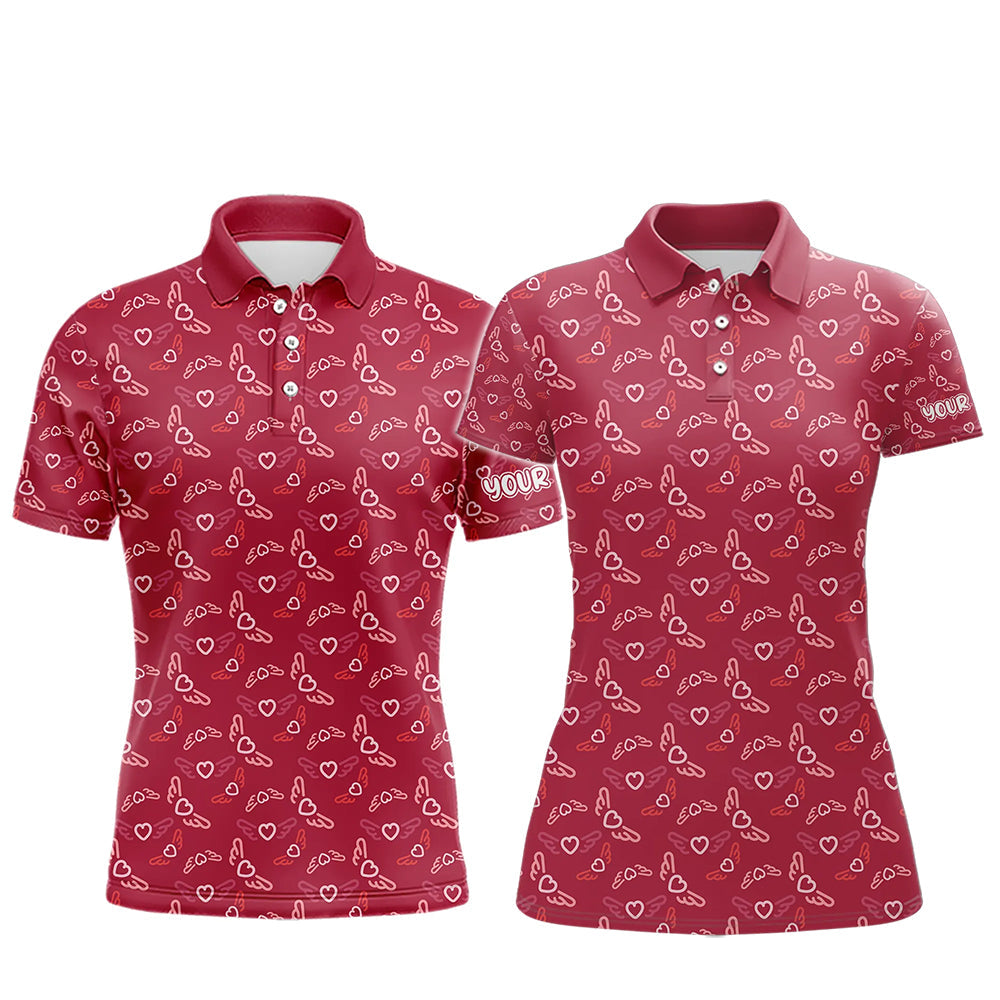 Pink Heart Wings pattern matching golf shirt for couple custom Couple Valentines golf polo shirts NQS9369