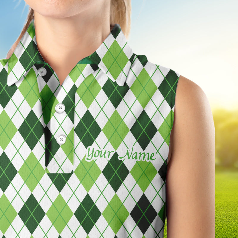 Women sleeveless polo shirt green argyle St Patrick's Day pattern golf shirts custom team golf polo NQS4726