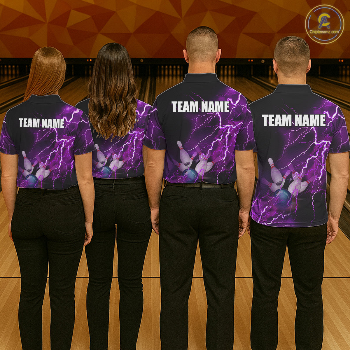 Mens polo bowling shirts Custom purple lightning thunder Bowling Team Jersey, gift for team Bowlers NQS6220