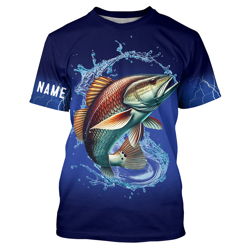 Redfish Puppy Drum Fishing blue lightning Customized Name Long sleeve Fishing Shirts NQS301